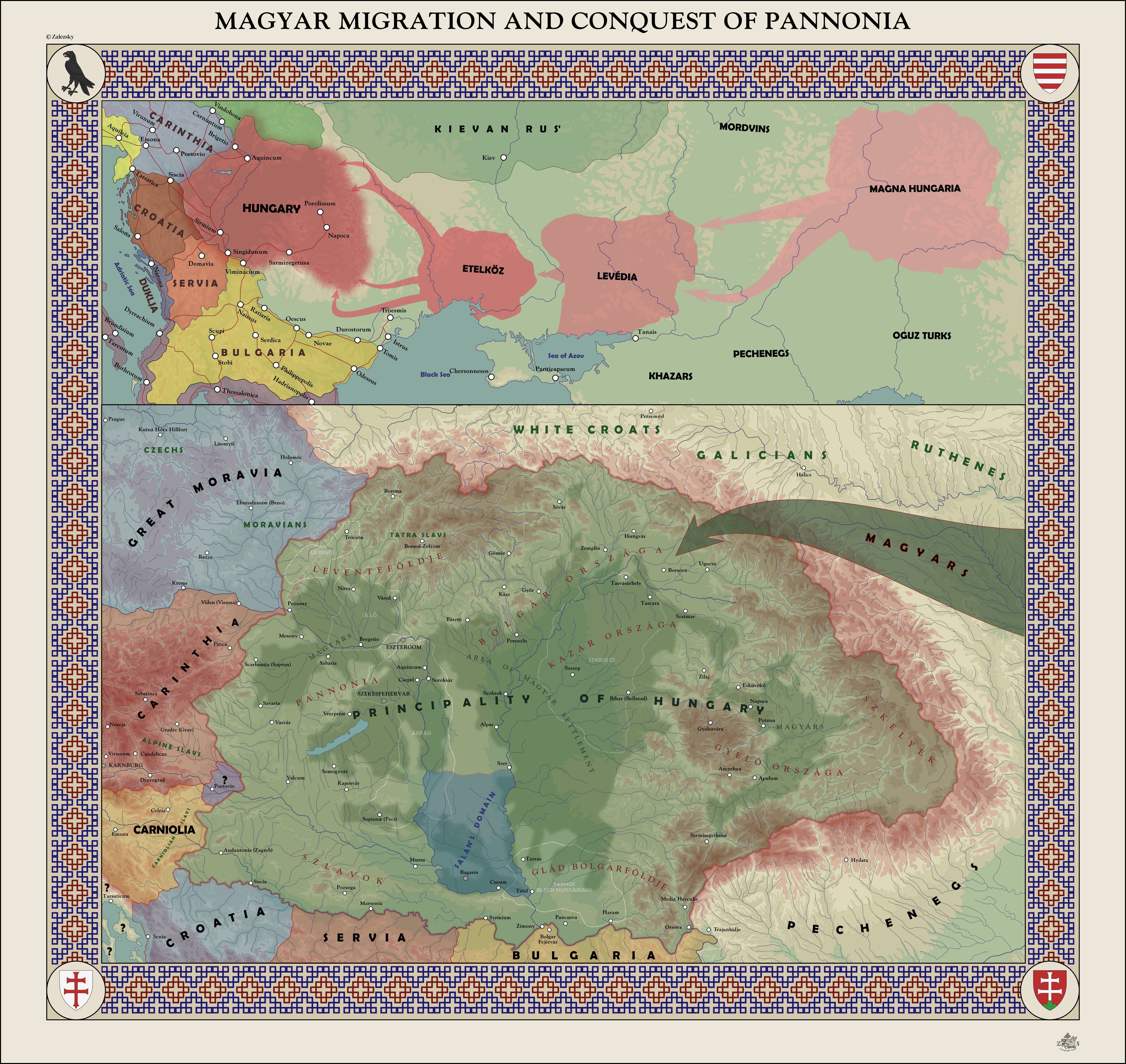Последовательные волны миграций населения, связанными с гуннами, аварами и венграми или мадьярами из Азии в Европу, оказали длительное влияние на население Карпатского бассейна. Наиболее ярко это проявляется в уникальных языковых и этнокультурных традициях венгров, ближайшие параллели которых обнаруживаются у населения к востоку от Урала. Согласно нынешнему научному консенсусу, эти восточные связи приписываются исключительно последней миграционной волне ранних венгров-завоевателей (далее сокращенно «завоеватели»), которые прибыли в Карпатский бассейн в конце 9 века нашей эры. С другой стороны, средневековые венгерские хроники, иностранные письменные источники и венгерские народные традиции утверждают, что происхождение венгров можно проследить до европейских гуннов, а последующие волны аваров и завоевателей считались родственниками гуннов.